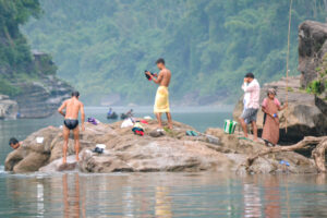 Most of the bathing in the countryside is done in public, either in the rivers and lakes or beside a well with a hand pump.