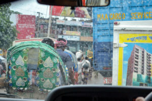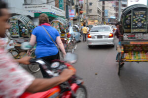 In Chittagong, there are approximately 330 eateries, yet only 15% meet basic health standards according to a survey done here. Food choices are limited. There is one upscale hotel that serves alcohol. The night we ate there, I got sick, so we ate at the same restaurants or had food delivered from them every day.