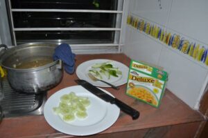 Last night, we decided enough is enough, and we walked half a mile to the market to go grocery shopping and cook