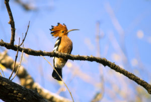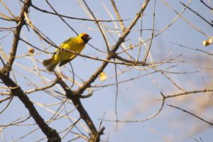 The Conbatium trees (if that is what they are) are similar to huge oak trees. There are about four or five on the property, and each tree has eight to ten large bird nests at the top. At sunset last night, all the parents stood sentry on their nests, each holding one or two fairly large chicks. Parents flew off to fish in the nearby delta and returned to the nests to feed their chicks all day long. A half a dozen other bird species, such as the Hoopoe, Black Collared Barbet, and the Lesser Masked Weaver, also made the trees their home.